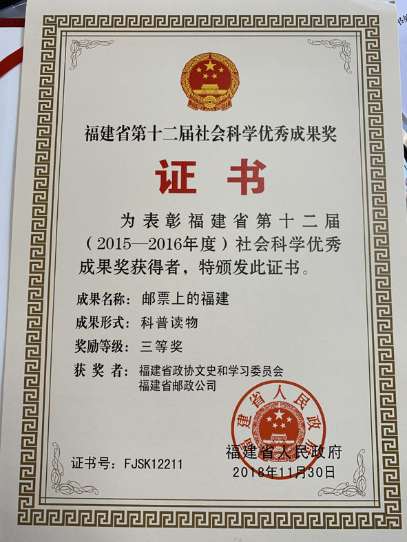 在黨的十八大、十九大精神指引下,我們積極發揮政協的平臺優勢,集思廣益,團結了大批優秀的長期從事黨史、檔案、集郵、文史研究工作和文學創作的專家學者,組成政協文史工作人才團隊,從《郵票上的福建》開始,走上了郵票系列圖書的長征創新路。人們常說郵票是“國家名片”,我要說,郵票特別是郵書,也是承載福建經濟、文化、社會和人文精神走向世界的名片。時光閃過6年,我帶領同志們一起創意、策劃、編寫、出版的5本綜合性或專題性郵書,得到省領導、廣大讀者的贊譽和社會的廣泛認可——