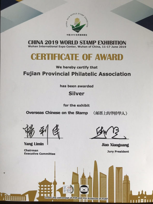 《郵票上的華僑華人》喜獲中國2019世界集郵展覽文獻類銀獎;