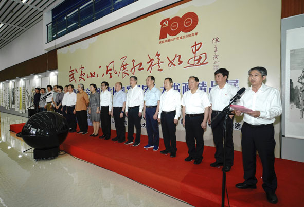 為慶祝中國共產(chǎn)黨成立100周年,深入學(xué)習(xí)貫徹習(xí)近平總書記來閩考察重要講話精神,扎實推進(jìn)黨史學(xué)習(xí)教育和“再學(xué)習(xí)、再調(diào)研、再落實”活動深入開展,再現(xiàn)黨的光輝歷程,謳歌黨的豐功偉績,深化人大“雙聯(lián)”機(jī)制,展示閩東北協(xié)同發(fā)展區(qū)人大精誠合作、攜手共進(jìn)的新?lián)?dāng)新作為,6月8日,由福建省文學(xué)藝術(shù)界聯(lián)合會、南平市人大常委會主辦,省美協(xié)、省書協(xié)、南平市文聯(lián)、南平市文旅局、南平市人大書畫藝術(shù)院承辦,福州、莆田、寧德、平潭人大書畫院共同協(xié)辦的“武夷山下風(fēng)展紅旗如畫——2021書畫筆會暨閩東北協(xié)同發(fā)展區(qū)人大書畫精品展”在武夷新區(qū)舉行。