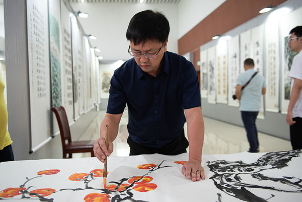 活動現(xiàn)場,書畫藝術(shù)家們揮毫潑墨,行云流水,用一幅幅主題鮮明、格調(diào)高雅的書畫作品,獻(xiàn)禮建黨100周年,表達(dá)了對閩東北協(xié)同發(fā)展區(qū)實現(xiàn)同頻共振、尋求互惠共贏, 共同推動區(qū)域高質(zhì)量發(fā)展的美好祝愿。