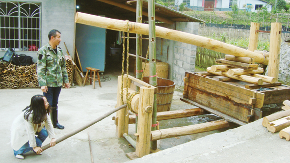 做筍一般是在清明前后一二個月時間,剛好是有春筍的季節,當地家家戶戶都抓緊這段時間做筍。他的家門前就有一架傳統的木制“筍榨”擺放在那里,這架“筍榨”由筍箱、將軍杠、榨輪、木梯、橫板等組成。筍箱長寬約1.5米,高約1.2米。旁邊屋子是筍加工作坊,放有筍桶、筍鍋,筍池、筍爐等一系列工具。他的妻子雷菊英,女兒雷求花等在里面忙碌地燒鮮筍、烤筍干、切筍片,到處彌漫著春筍的清香。