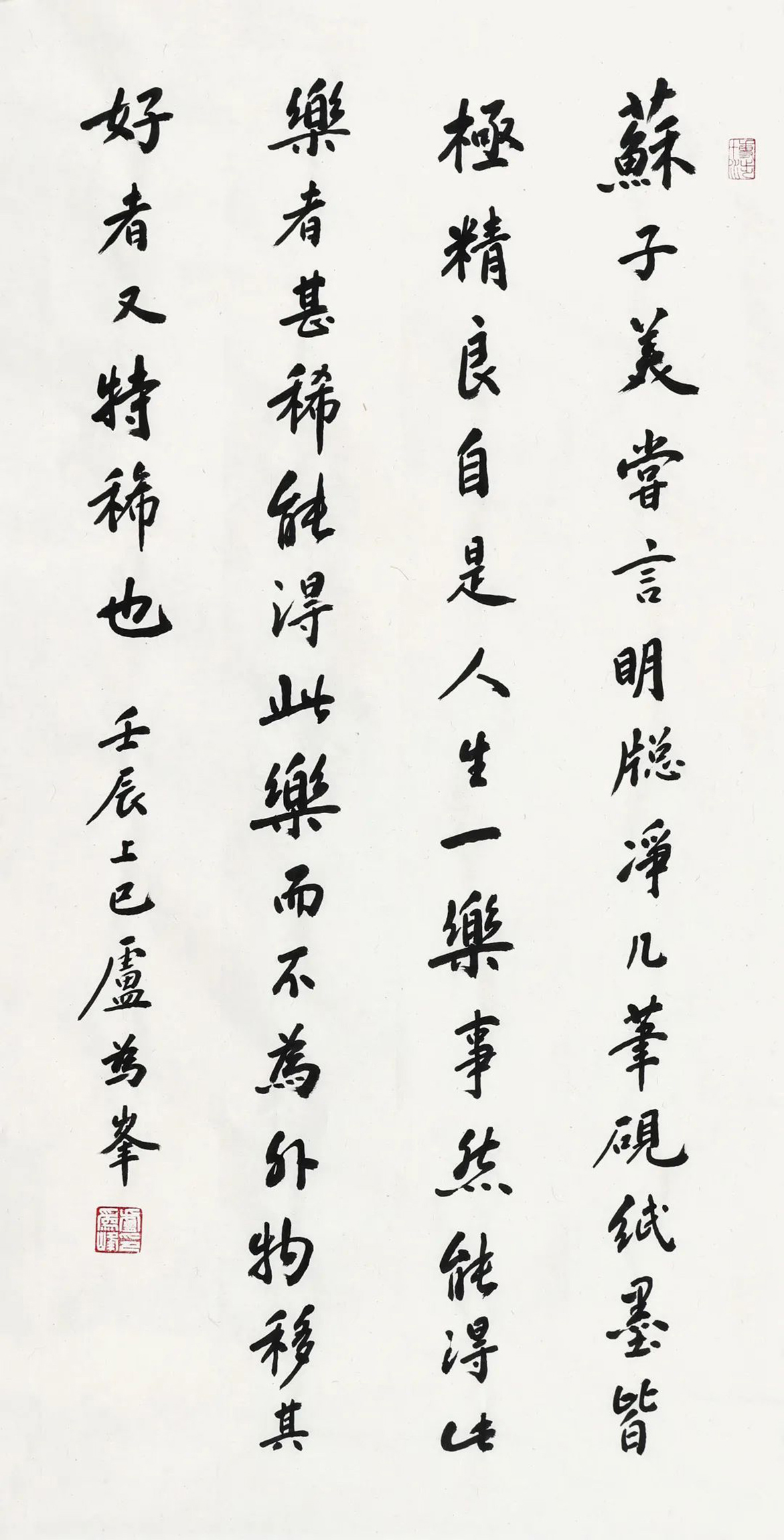 為峰先生與大林先生聯袂辦展,珠聯璧合,我徜徉其間,吮吸彌漫于展廳的淡淡文氣,吮吸彌漫其間的淡淡幽香,我細細品著新春的“文化點心”,覺得這道點心,精致雅致,韻味十足。