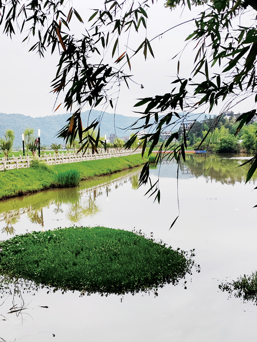 清晨邁步,踏上蜿蜒綿延的沿河棧道,我等仿佛進入詩畫的海洋,藍天與白云,青山與湖水,紅花與綠樹,田野與村莊串連一體,相映成趣,婉如一個個曲譜上跳動的音符,吟唱于山水之間。湖面,飄渺著青莎,裊娜迎人,時而與魚兒嘻戲,時而向遠山招手;山坡上,蒼翠欲滴,霧氣搖曳著朦朧,又像淡雅的絲綢,半醒半夢地纏繞在山的腰際,山水各色,交輝相映,美侖美奐,美不勝收。