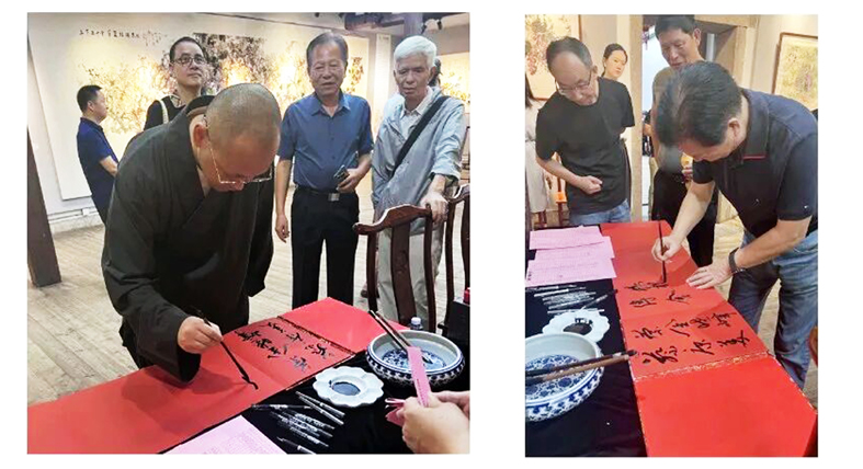 本次藝術展由盧一心、蔡爾申、陳蔭夫、劉家茂四位藝術家組成,共展出作品近百件,旨在弘揚中華傳統文化,推動新時代文藝發展。盧一心集詩人、作家和畫家身份于一身,內心涌動著對葡萄原根情結的追問和審美沖動。一邊以作家的深刻,總結出葡萄精神 —— 三種境界和哲學思考;另一邊以畫家的敏感,采用新水墨技法,將國畫的寫意與油畫的色彩結合起來,使光影、線條、色彩呈現出更加新奇的視覺效果,創作出一系列獨具特色的葡萄國畫作品,壯寫西域風情、絲路情懷與敦煌情調,表達對新時代、新絲路的暢想與哲學思考;蔡爾申是中國書法家協會會員、中國藝術工委原副主席、福建省政協書畫院特聘藝術家、福建海峽傳統文化研究院院長。其書法師承書法名家謝云,書法以 “厚重、骨力、純粹” 六個字為特點,拙中見稚,樸實高妙,落筆之處,筆墨淋漓,韻味十足,界破虛空,線條之美,有舞蹈之姿,令人嘆服。尤為可貴的是,蔡爾申也是位詩人,經常可以看到他的妙筆生花的作品和與文友唱合的詩詞,仿佛回到元明清時代,盡顯文人雅韻;陳蔭夫是旅日藝術家,曾任中國名人書畫院執行副院長、中國文化管理學會藝術總監、中國藝術研究工委駐會副主席兼秘書長,作品被中國國家博物館、北京大學等機構收藏,由榮寶齋專業經銷,其創作融合融合狂草筆法與詩書畫元素,線條頓挫、墨分五色,突破傳統蘭畫風格,畫風獨樹一幟;劉家茂是一位雕塑藝術家,閩江學院美術學院副教授,現為九三學社中央委員會教育文化專門委員會委員、九三學社中央委員會促進技術創新工作委員會委員、中國工藝美術學會會員,其主要研究方向為:雕塑、漆藝、陶藝等領域,作品多次獲得國家級、省級大獎,其深研的課題多次得到專業機構的認可,藝術創作與理論兼工,創造力突出。