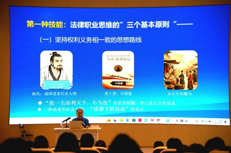 ——在 “拓視野” 層面,他從文明源頭切入,剖析中西方法治文化差異,指出西方法治 “權力制衡” 與中國法治 “德法共治” 的不同特點。他強調,法治建設不能走 “拿來主義”,新生既要借鑒西方優秀法治成果,更要堅守中國文化根基,在對比與思考中樹立法治文化自信,以寬廣視野看待法治事業發展。