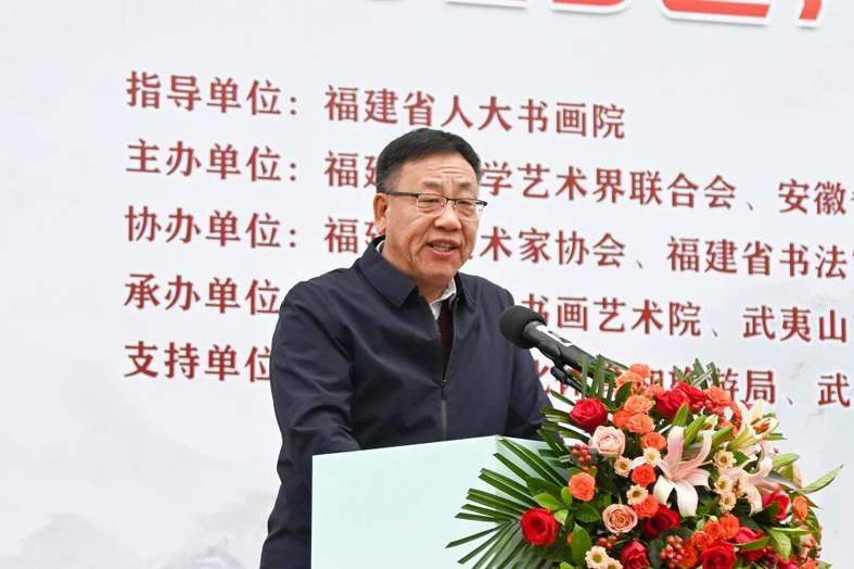 溫佳祿代表省人大書畫院致辭。他說,書畫工作具有強大的思想引領力、精神凝聚力、價值感召力和社會影響力。希望大家認真學習貫徹習近平文化思想,按照黨的二十屆四中全會對文化工作提出的要求,認真總結好經驗好做法,結合自身實際,精心謀劃人大書畫工作,積極舉辦富含福建文化特色與元素的展覽,不斷提升書畫工作的質量和水平,為展示福建文化新形象貢獻力量。