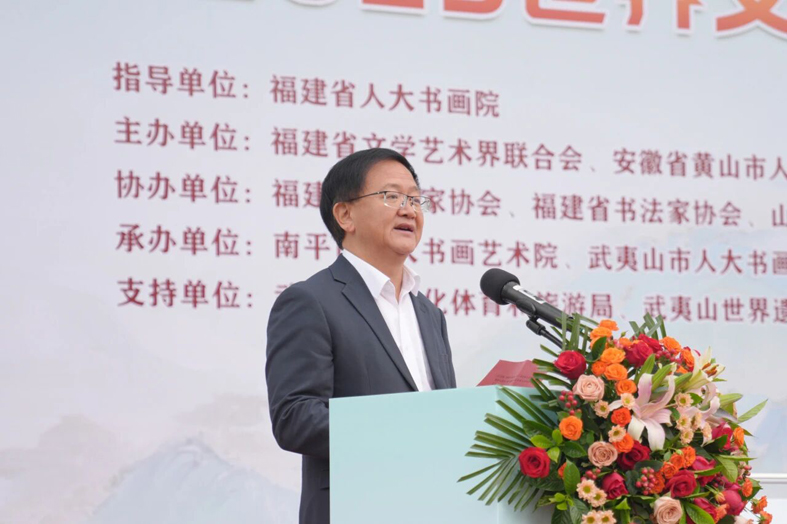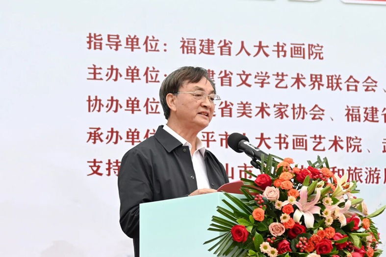 陳善平代表南平市人大常委會對參加活動的領導和藝術家們表示熱烈歡迎。他說,我們以“世界遺產 人民共享”為主題,齊聚武夷山舉辦這場書畫筆會暨精品展,既是對習近平總書記“守護好中華民族的文化瑰寶和自然珍寶”和“提升文化影響力、展示福建新形象”重要指示的生動踐行,也是全國四大“雙世遺”所在地攜手共促遺產保護、共傳文化薪火的創新實踐。希望能以此次活動為起點,深化各地在遺產保護、文化傳承、生態建設等領域的協作,讓世界遺產真正成為惠及人民的精神財富、推動發展的綠色動能。