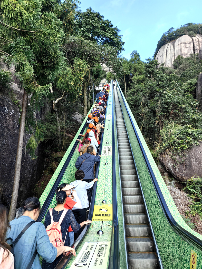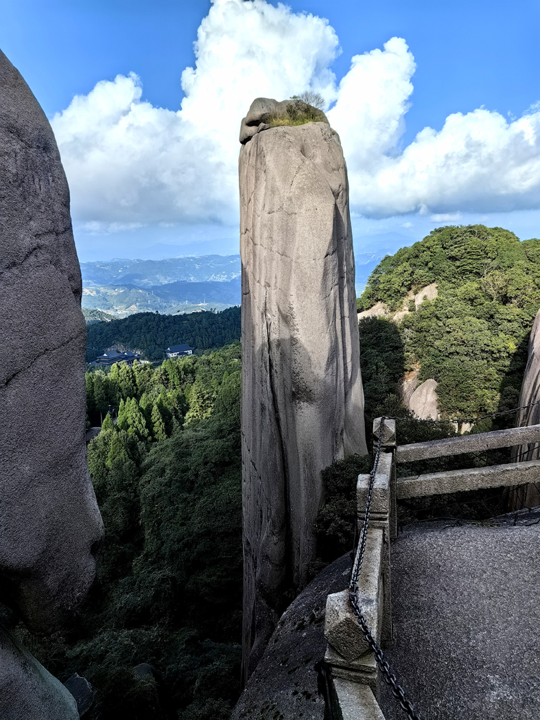 離開餐廳,我們一行往“海上仙都”太姥山而去。拾級而上,只見奇石嶙峋、形態萬千,云霧如輕紗般繚繞山間,時而穿行于幽暗逼仄的一線天,時而步入開闊明朗的通天洞,景致交替間別有洞天。耳畔是山泉叮咚作響,清脆悅耳;鼻間縈繞著苔蘚與松針的清香,沁人心脾。行至半山腰,一座古樸山房悄然映入眼簾,空氣中隱約飄來白茶的醇厚香氣。山房的主人是位畬族青年,見我們駐足,便熱情相邀入內品茶。他沖泡的福鼎“白牡丹”,茶湯清澈透亮,入口裹挾著淡淡的蘭花香,回甘悠長,余味不絕。同行的陳霞女士是位音樂達人,她見茶桌上擺放著四五支不同型號的長簫,便好奇地問:“這是你吹的簫?”青年含笑頷首:“是的。”并隨手拿起一支長簫,即興用F調吹奏起《鐵血丹心》,悠揚婉轉的旋律穿林過壑,與山風松濤相映成趣,渾然一體。讓人不禁想起魏晉名士嵇康“手揮五弦,目送歸鴻”的清雅,如今雖無絲竹合奏,卻有簫音逐風而起、茶香縈林而散,這般物我相融之境,自有一種與古人相通的清逸之韻。不少游人駐足,在這仙山云霧、茶香琴韻的意境中,眾人無不沉醉其間,流連忘返。