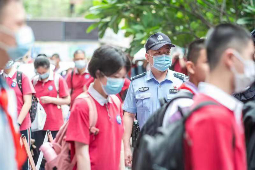 倉前所民警在校園門口站好護學崗,保障師生安全。
