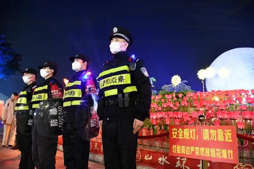 倉前所民警在煙臺山歷史風貌區燈會現場執勤。