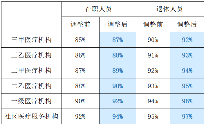 根據醫療機構等級不同,實行差別化報銷比例,省本級職工醫保住院政策范圍內報銷比例相比原政策提高2個百分點。