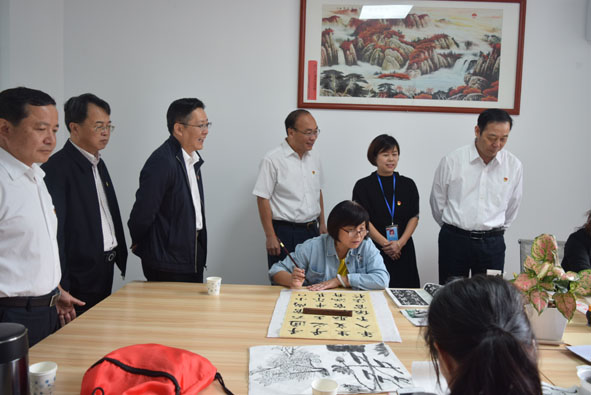 中共福建省委常委、組織部部長楊賢金(右一),南平市委組織部長林旭陽(左三)、邵武市委書記何光松(左四)等到邵武西門社區調研基層黨建陣地建設。