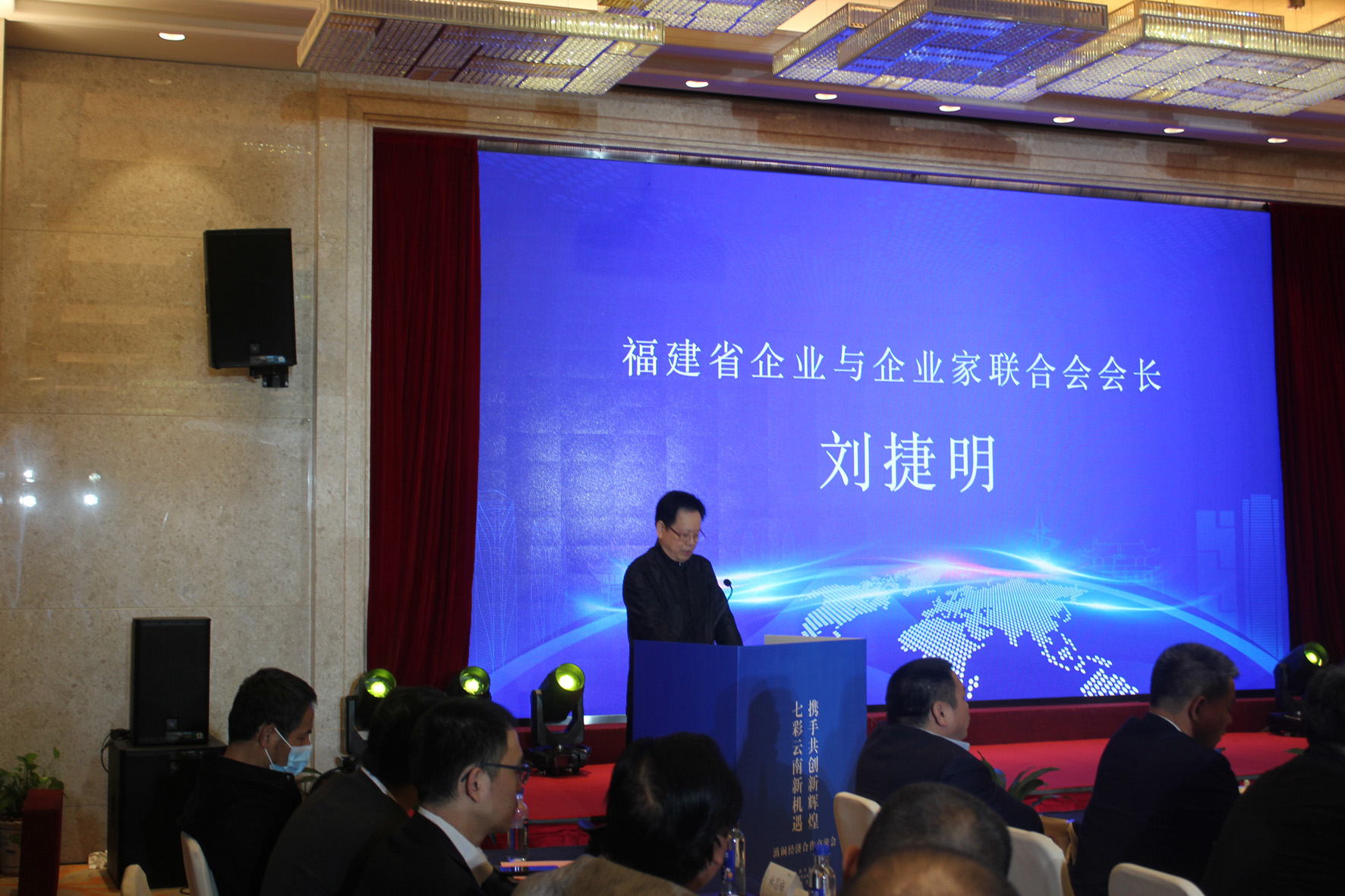 福建省企業與企業家聯合會劉捷明會長對遠道而來的云南客人和參會的企業家代表表示熱烈歡迎,同時勉勵和期望福建商人走出去,也期待滇閩之間的企業加強合作互動,互惠互利。