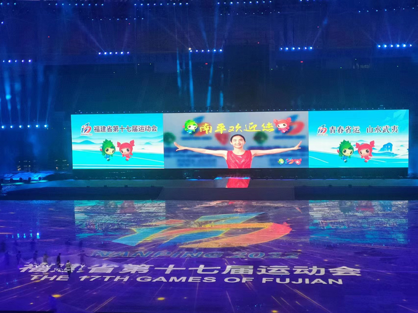 南平市體育中心燈光璀璨、流光溢彩,20時,開幕式正式開始。伴隨著雄壯的中華人民共和國國歌和省運會會歌,中華人民共和國國旗和省運會會旗、第十七屆省運會會旗先后在會場冉冉升起。