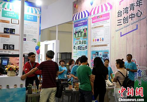 2018年5月19日,客商和民眾在福州臺灣青年三創中心參觀。正在福州舉行的“21世紀海上絲綢之路”博覽會暨第二十屆海峽兩岸經貿交易會首次設置了臺灣青年創業展區,展示著福州落實惠臺31條措施及臺灣青年創業工作成果。