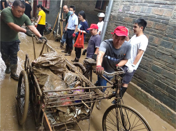 一方有難,八方支援。為盡快恢復城市的道路暢通和企業正常經營,市直機關迅速落實“機關聯社區”“機關聯企業”工作機制,3675名機關黨員干部第一時間下沉社區、企業,對接需求,為企業、社區帶去了沙包、消毒液、漂白粉等抗災物資,與社區、企業一道開展搬運、清淤、沖洗、消殺等災后幫扶工作。