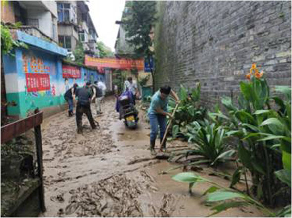 為盡快恢復道路暢通和百姓正常生活,市委、市政府、市人大、市政協、組織部、通泰街道辦等機關迅速落實“機關聯社區”工作機制,發動109名機關黨員干部第一時間下沉到北門,不到半個小時清淤隊、搬運隊、清掃隊、沖洗隊孕育而生,或肩挑或手提,相互幫襯、相互鼓勁,僅用一天不到,泥濘不堪的北門恢復了原貌。