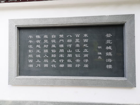 重建的鎮海樓比原來抬高了10米,登上這抬高的石階,來到一樓前,映入眼簾的是一塊鑲著一塊長約三米、寬約一米五的雙龍騰云駕霧的巨幅青石浮雕,栩栩如生,雙龍矯健威武。浮雕下方,還刻有一對如意。