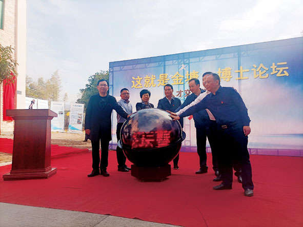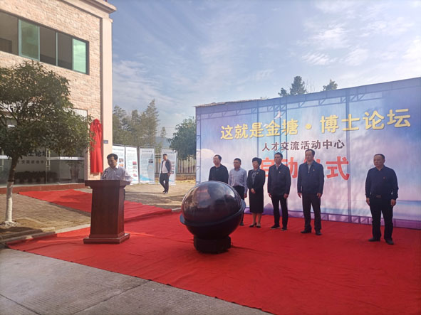 邵武市政府副市長、吳家塘鎮黨委副書記徐志華致辭,邵武市委副書記王曉宣布活動正式啟動。隨后,各位領導及人才代表上臺,共同點亮“金塘•博士論壇暨“人才交流活動中心”的啟動球,同時為金塘工業園區人才驛站揭牌。