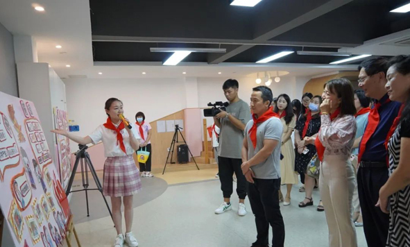 孩子們在成果展板前大方地向嘉賓介紹隊前教育課題開展的活動,精彩的講解贏得陣陣掌聲和贊嘆聲。