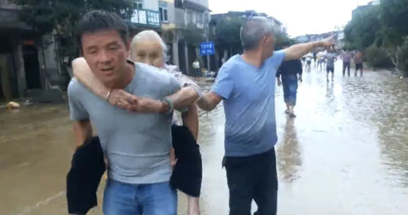在吳家塘鎮,各救援隊派遣專業人員支援救災工作。金塘園區派出應急救援消防隊8人,進入鐵羅村、楊家墟村幫助街道清淤,為村民送上干凈的飲用水。藍天救援隊5人進入楊家墟村受災最嚴重的南山下組開展救援,搶通進村道路。省應急救援隊10人為莊壇村運送應急物資,由于莊壇村進村道路沖毀,救援人員背著礦泉水,拎著食物,抬著柴油步行兩個多小時,到達了莊壇村中為村民分發食物和水,恢復村部通電。