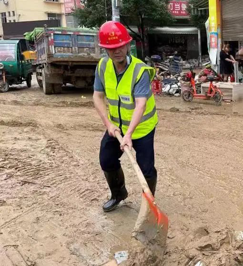 洪水過后,河東鄉河東小學片區留下了大量的淤泥和垃圾,嚴重影響了群眾正常出行和交通安全。邱為海帶領志愿服務隊勇挑重擔、沖鋒在前、戰斗在前,積極幫助開展災后清淤排障、搶通道路,全力奮戰在抗洪救災第一線。